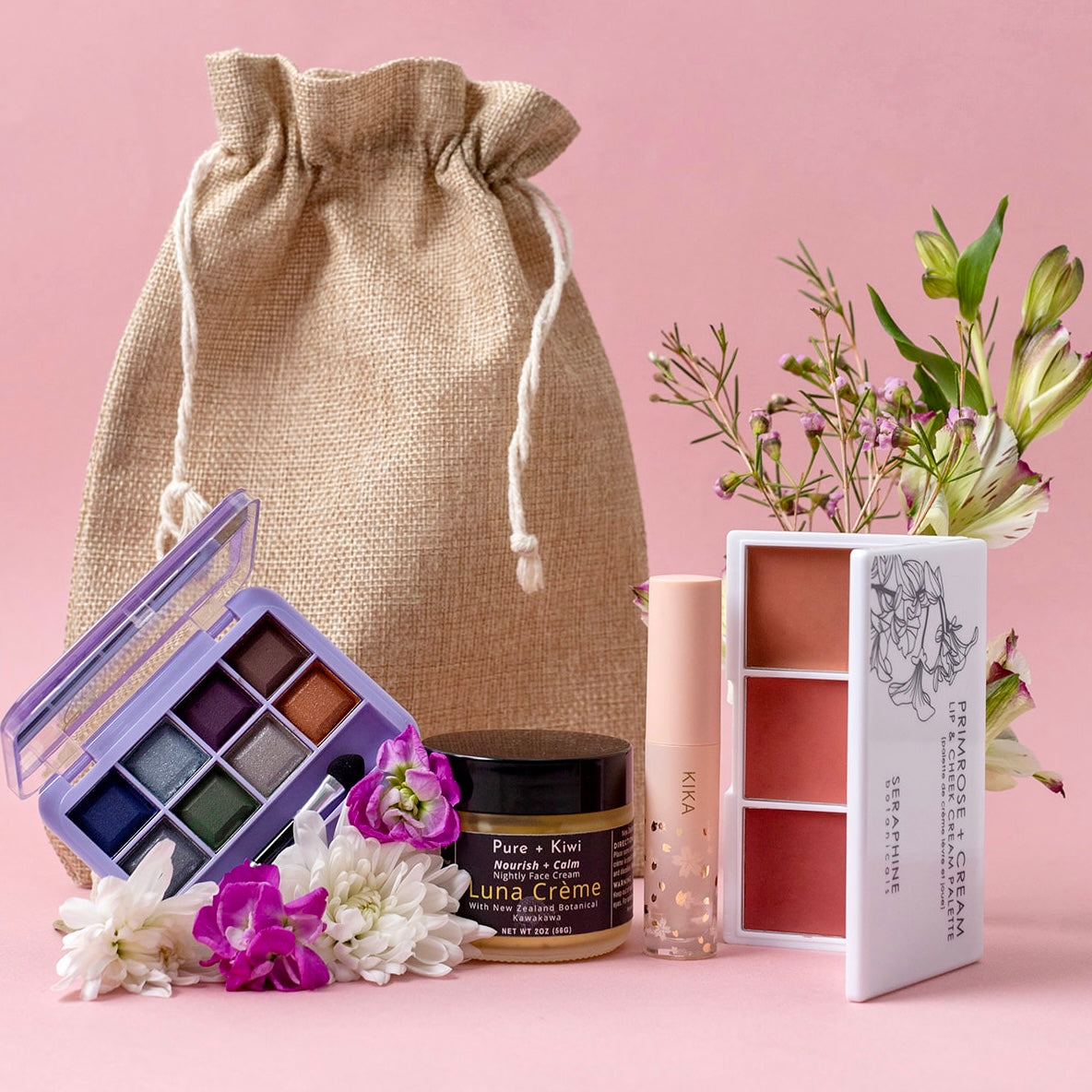 Seraphine Botanicals' Primrose + Cream (0.42 oz ; $42) is a petal-soft palette that melts into skin with a silky touch. Infused with nourishing botanicals, each shade glides effortlessly over lips and cheeks, delivering a dewy wash of buildable color.